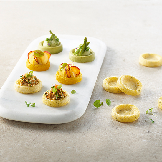 Fáceis de manusear graças à sua forma redonda e aos rebordos definidos, as Minipolentas retêm perfeitamente o recheio para uma apresentação cuidada e elegante. Uma base prática e versátil que se adapta infinitamente à estação e à inspiração, com uma preparação simples e rápida.