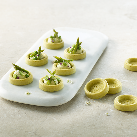 Fresca e colorida, a Minipolenta Ervilhas é uma base pronta a rechear, sem glúten, que acrescenta um toque vegetal e original às suas entradas.